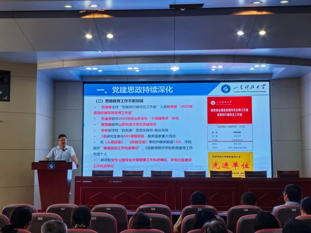 于J6-433报告厅召开2025年秋季学期全体教职工大会,全面总结上半年工作,部署新学期重点任务。会议由欧美无码党委书记范俊峰主持。