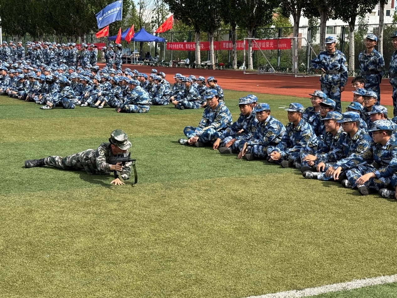 金秋时节,天朗气清,高地操场上旌旗微动,2025级新生军训正在如火如荼进行。伴随着清晨的阳光,测绘学子们开始了防毒面具佩戴的学习以及95式的操作。