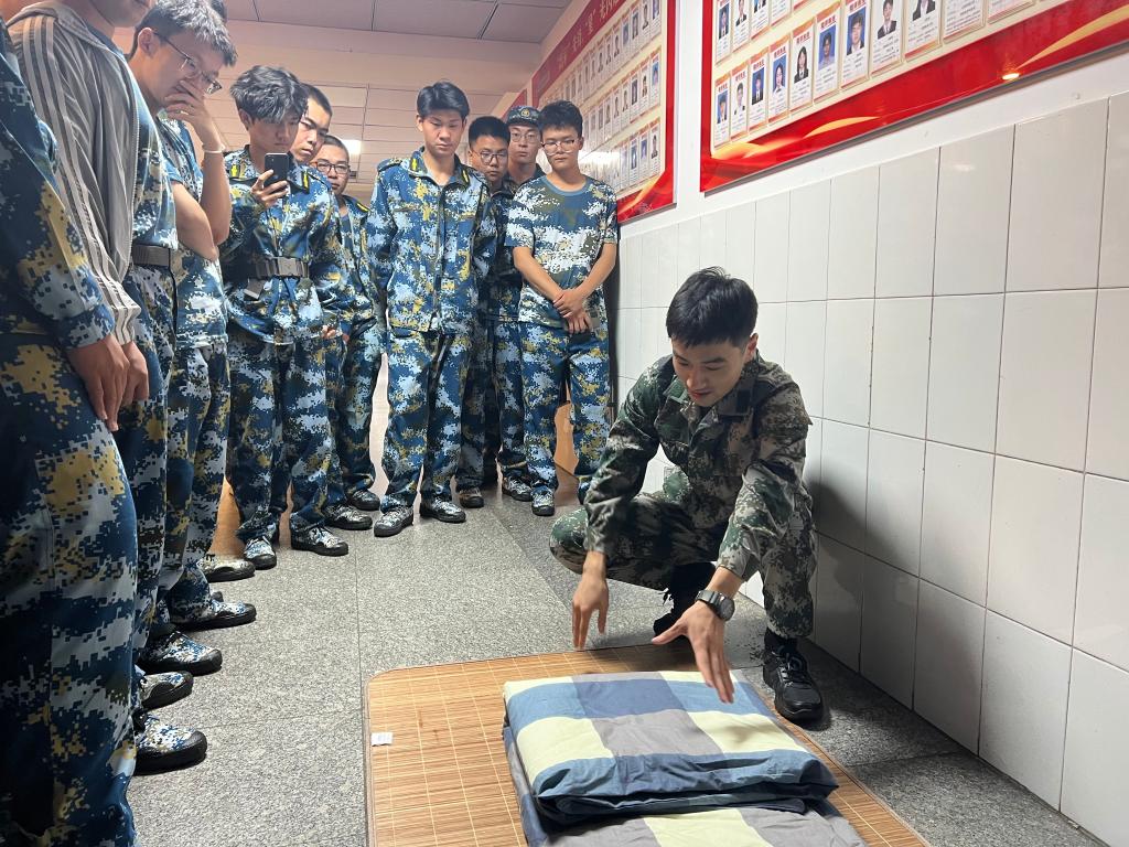 军训不仅是体能的锻炼,更是作风的养成。在教官的悉心指导下,同学们从叠“豆腐块”被子、物品摆放到地面清洁,一丝不苟地完成每一个细节。通过反复练习,大家逐渐体会到“一屋不扫何以扫天下”的深刻内涵,将严谨细致的作风融入日常生活。