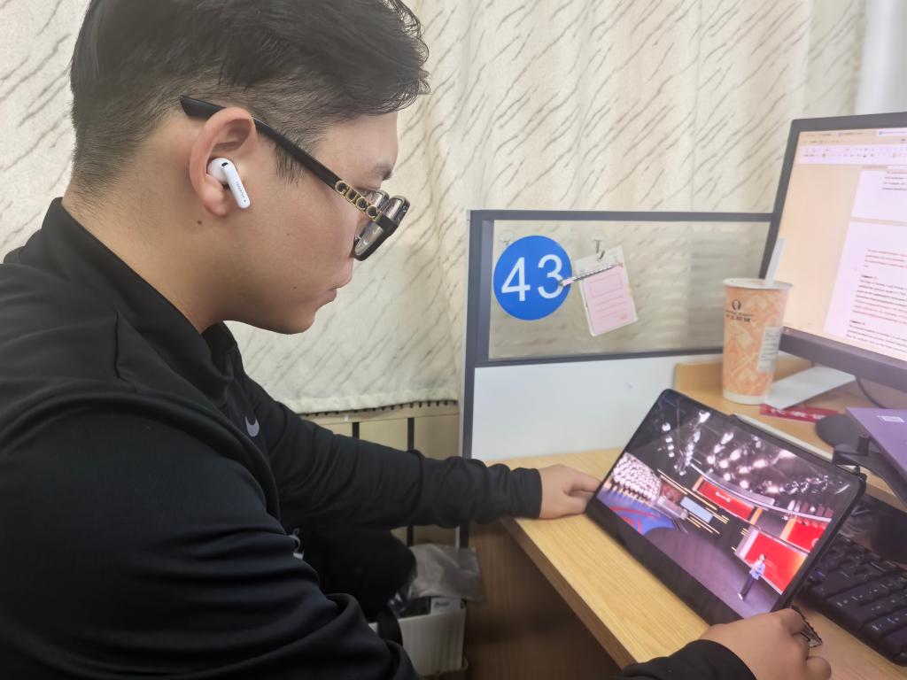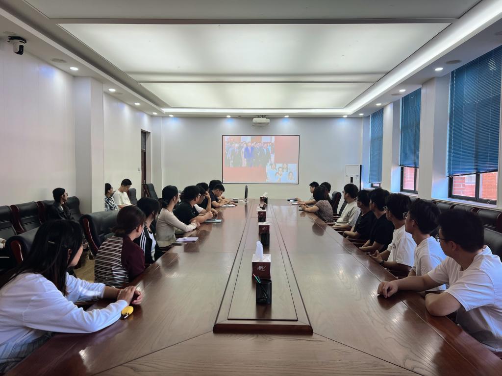 全体辅导员老师和学生代表在J6-463第一会议室集中观看