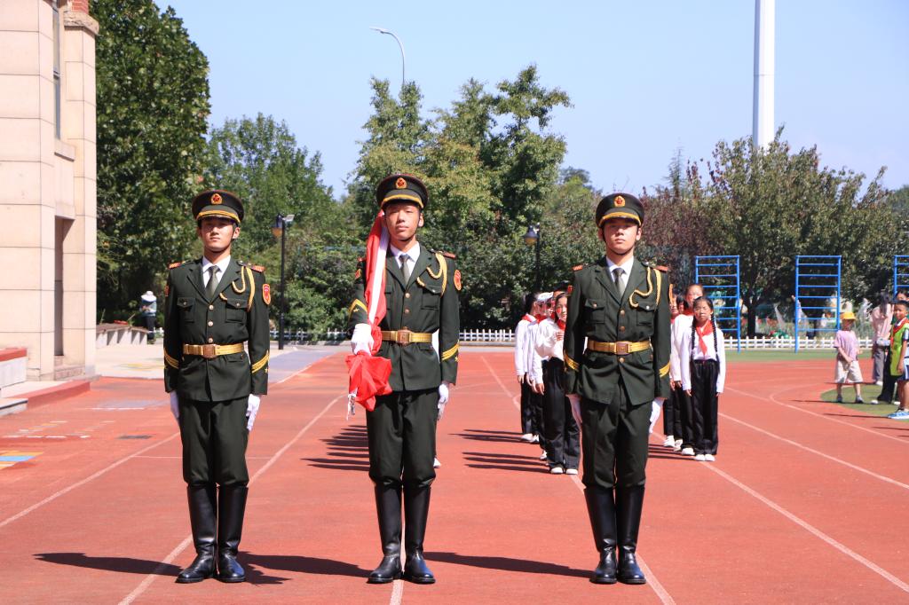 这场特别的升旗仪式将爱国主义教育化为生动一课,为同学们的新学期注入满满正能量。国旗护卫队队员也通过亲身实践,更加深切体悟到肩上责任与荣耀,决心将爱国情怀转化为前行力量,在守护国旗的道路上步履愈发坚定。(通讯员:史延涛)