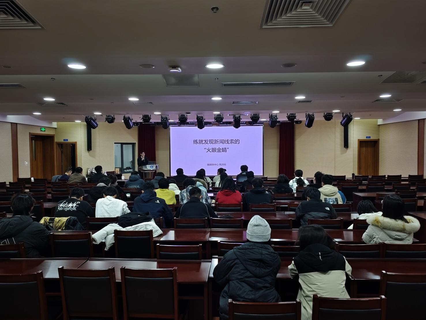 会上,韩洪烁以“如何捕捉身边的新闻线索”为题,围绕新闻写作和发现新闻的实用技巧进行了深入讲解。他结合自身丰富的实践经验,从新闻稿的选题、篇章结构、语言运用等方面进行了系统阐述。同时,他以发表在人民日报、光明日报、中国青年报等刊物上的优秀稿件为案例,为大家详细解读了如何发现身边独特的新闻线索,让同学们充分感受到“身边处处是新闻”;他认为“小线索可以凸显育人大情怀”,把小线索挖掘出来并与学校育人理念和举措想结合,写出的新闻就能形成宣传效应,体现新闻价值。