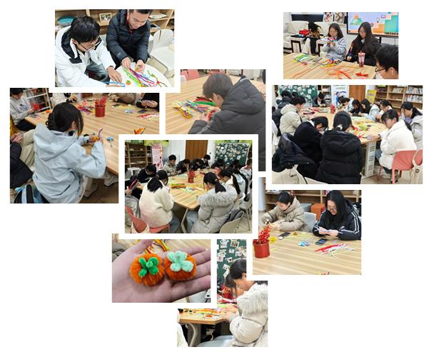心理健康协会于图书馆209举办“心晴手工坊”系列活动,活动以“扭结同心,共享暖意”为主题,共举办4次,吸引来自全校100余名学生参与。