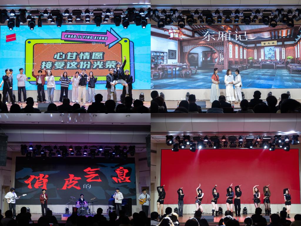 联欢会第一篇章“青春律动、逐光而行”在大艺团器乐队带来的《伤心的人别听慢歌》中拉开帷幕。点燃全场热情,大艺团舞蹈队的《初智齿》以活力的舞步展现青春朝气,志愿实践中心的小品《东厢记》则以幽默的剧情引发阵阵笑声,将现场气氛推向高潮。