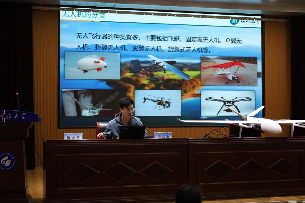 此次宣讲活动包括无人机行业应用基础介绍和无人机行业设备实战演示两个环节,由山东瑞智飞控科技有限公司崔宗渝进行讲授与演示。崔宗渝分别从无人机发展史、无人机的分类、无人机行业应用、无人机相关法律法规以及无人机培训等多个方面进行了深入浅出、幽默风趣的讲解,现场学生对无人机基础知识受益匪浅,对无人机行业的前沿应用以及未来市场趋势产生了浓厚的兴趣。随后,移步至室外场地进行多旋翼及固定翼无人机操控演练,通过实战演练让同学们了解多旋翼无人机的操控步骤以及注意事项,最后对同学们的疑问进行了详细解答。